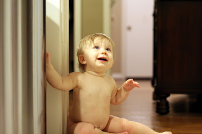 She is a very laid back, good-natured baby. She is sweet and fun and is generally in a good mood. She loves for you to play peekaboo or surprise her or "get" her. She smiles so big. She has the cutest laugh and I just can't hear enough of it. I thank God all the time for her.