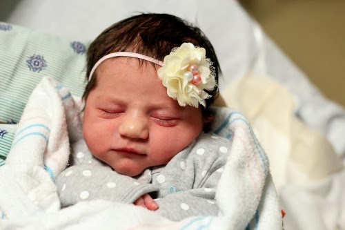 Since she was born at 3:12 am we didn't sleep that night except for maybe 10 minutes. And things have changed since I had Cambry. Now the baby stays with you the whole time. They don't take them away to the nursery for hours while the check temp, bathe, give shots, run tests, etc. It is great that the baby gets to stay with you the whole time, but I have to admit I was kind of disappointed when I heard they weren't taking her away. I was exhausted and I was thinking I could get a couple hours of sleep during that time! Oh well, I got to snuggle with our baby so that was better :)